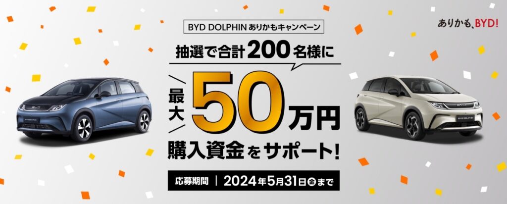 BYD DOLPHINをもっと身近に、みんなのものに!「BYD DOLPHIN ありかもキャンペーン」を実施