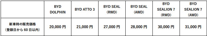 販売対象 | 新車購入客かつ新車購入時(新車登録日から60日間)のみ |