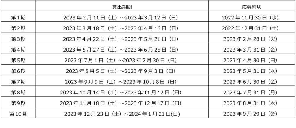 ※貸出期間は、車両の状態や社会情勢などにより変更する場合があります。予めご了承ください。