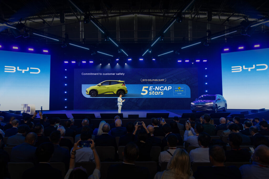 IAA公式記者会見で、BYD エグゼクティブ・バイスプレジデントを務めるステラ・リー(Stella Li)は、最近発売されたコンパクトEV「BYD DOLPHIN SURF」がEuro NCAPで最高評価となる5つ星を獲得したと発表しました。さらに、同モデルが2025年末に稼働予定のハンガリー・セゲド工場での最初の生産車種になることを明らかにしました。