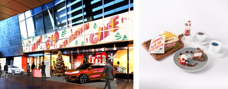 会期中は、電気自動車ブランドであるBYDが、クリスマスにはかかせないイルミネーションのように電気を使ったeモビリティで世の中を明るくしたいという思いから、「HAPPY BYD e-LLUMINATION(ハッピービーワイディーイルミネーション)」をコンセプトに、屋外広告や車両展示に加え、V2L機能※1を使用したイルミネーション装飾などを展開してまいります。また、近接するヒルズカフェ/スペースにて期間限定の「BYD e-LLUMINATION CAFE(ビーワイディーイルミネーションカフェ)」も展開し、今回のイベントのために開発したBYDオリジナルメニューもお楽しみいただけます。